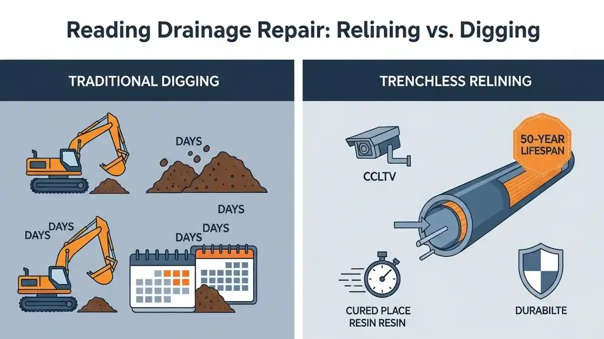 Avoid costly, messy excavations. Compare Banbury Drain Relining vs Digging to save your home, time, and money with our expert, minimally invasive, and durable no-dig repair solutions for local drains.