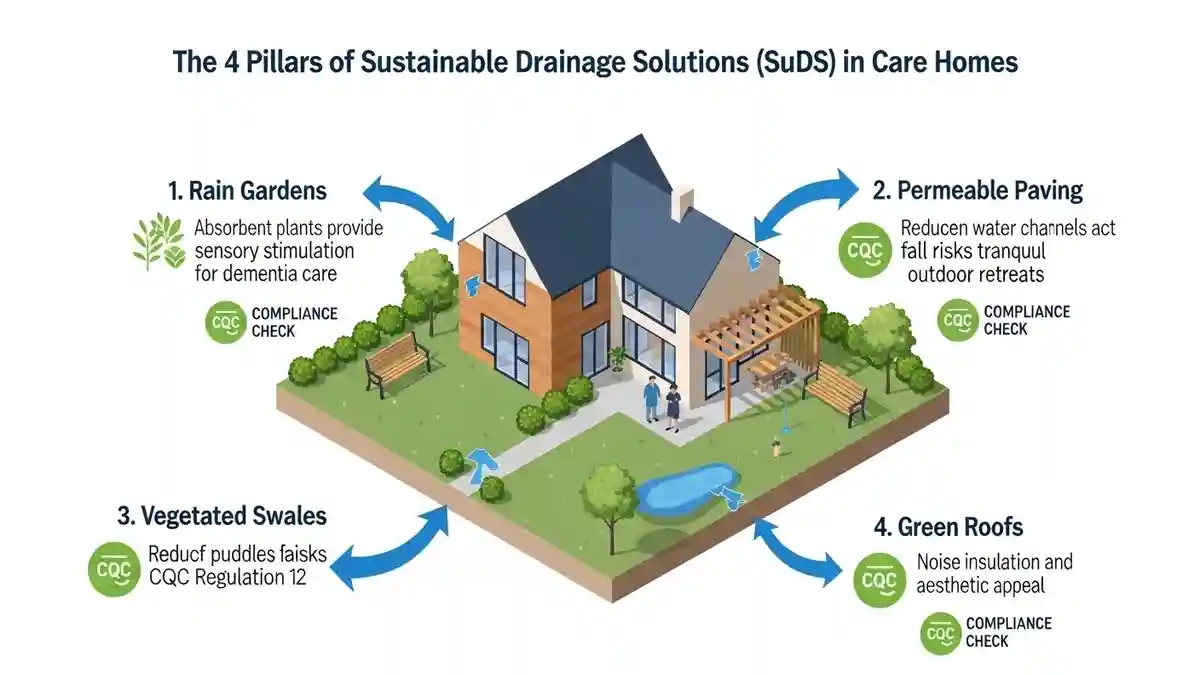 The future of sustainable drainage solutions CQC care home design is the integration of SuDS (Sustainable Drainage Systems). In Banbury, Policy EN18 of the Local Plan encourages SuDS to manage surface water runoff, which often plagues the surrounding area.